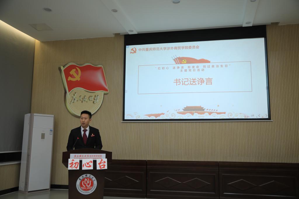 为进一步推进“不忘初心、牢记使命”主题教育,加强党员理想信念教育,充分传递组织的关心和希望,提醒激励党员同志们不忘初心、牢记使命、砥砺前行。我校管理学院党总支于2019年11月27日在9106开展“忆初心、送诤言、担使命,同过“政治生日”主题党日活动,为11月入党的党员同志过政治生日。管理学院院长李安平同志、党群工作部副部长梁修昌同志、政治课教学部部长田川同志、管理学院党总支书记周万春同志、管理学院副院长谭波同志、管理学院全体师生党员、发展对象、入党积极分子代表以及各二级学院党员代表参加了此次活动。