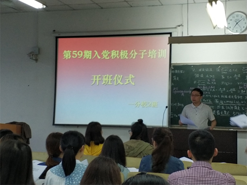 2018年4月25日下午19:00,重庆师范大学涉外商贸学院第59期党校培训一分校二班在刘刚老师的主持下在3502教室正式开班。