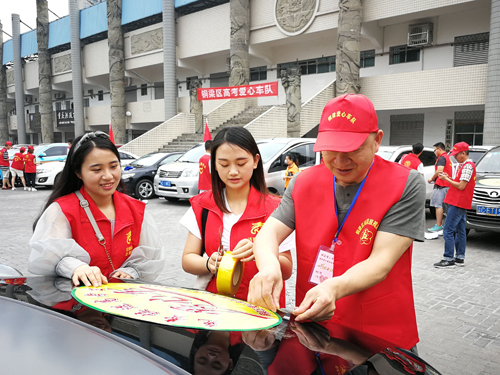 2018年6月7日,管理学院党总支组织学生党员和院学生会青年志愿者服务队携手铜梁区团委、铜梁区残联协会组建爱心送考车队,在铜梁各个高考考点开展爱心送考活动,此次活动持续两天,旨在为高考学子加油打气,提供良好的考试环境。