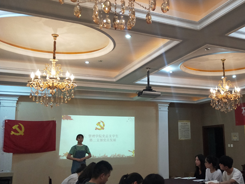 为认真学习贯彻党的十九大精神和习近平新时代中国特色社会主义思想,献礼伟大的中国共产党九十七载华诞,增强青年大学生对党的认识,提升学生党员的党性修养。管理学院党总支学生一、二支部于2018年7月1日19:30在2303教室开展以“一个信念跟党走,一颗红心报党恩”为主题的纪念中国共产党成立97周年纪念活动暨学生第二支部组织发展大会。