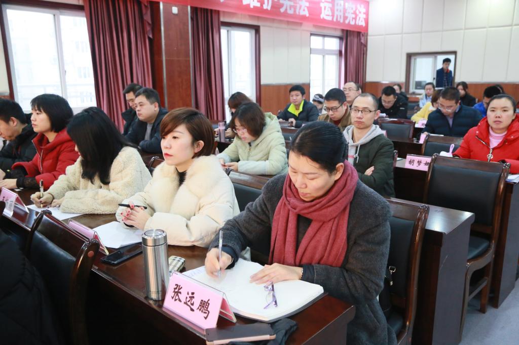 为进一步弘扬宪法精神,不断增强我校师生宪法意识,12月21日下午,我校在一会议室开展了“学宪法 讲宪法”专题教育讲座,学校科级以上干部、部分教师、学生代表参加学习。