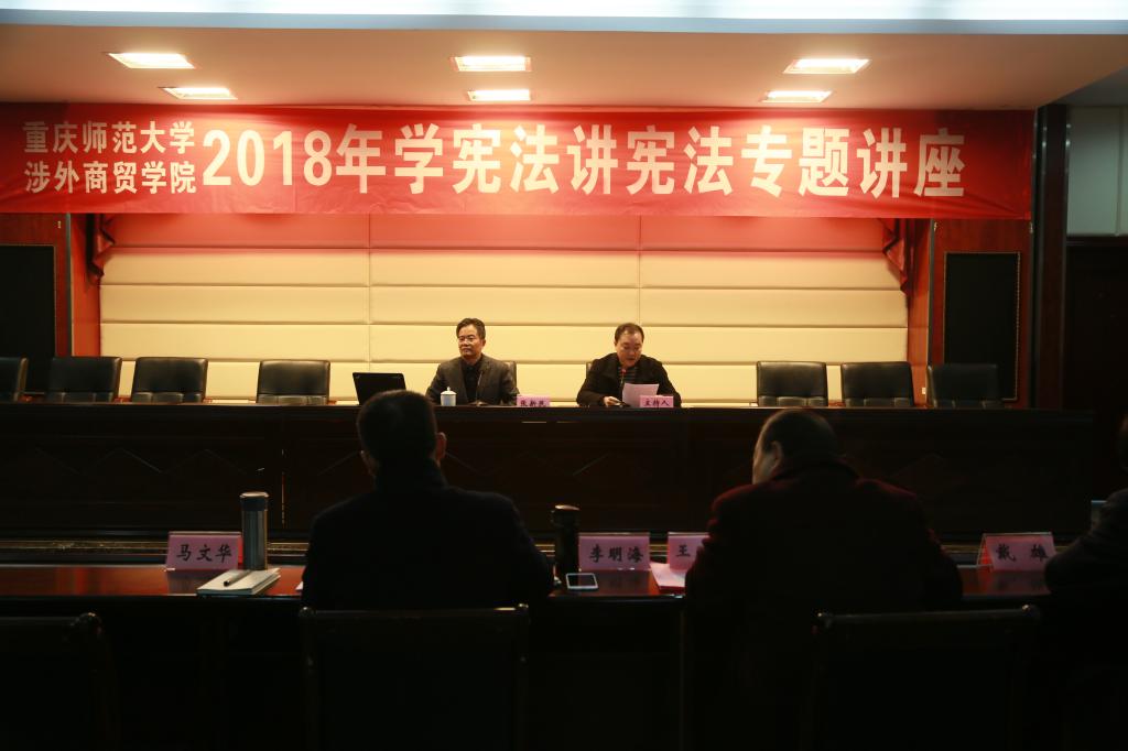 重庆市教育系统“百场”宪法报告会专家组成员、西南大学法学院党委书记张新民教授应邀为我校师生作了题为“从宪法修正案看我国改革开放40年”的专题讲座。张教授以其深厚的理论素养、丰富的实践经验和宽阔的研究视野,从我国宪法制度的创立和发展、宪法案的核心要义和精神实质、维护宪法权威、捍卫宪法尊严等几个方面,将中国特色社会主义宪法制度的演变及最新修订成果作了全面清晰的梳理,并结合大量生动案例阐述了学习宪法、尊崇宪法、维护宪法的重要意义,进一步增强了师生维护宪法、捍卫宪法的思想自觉和行动自觉,也对推进学校依法治校创新发展具有很强的理论性、针对性和指导性。