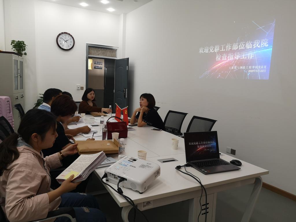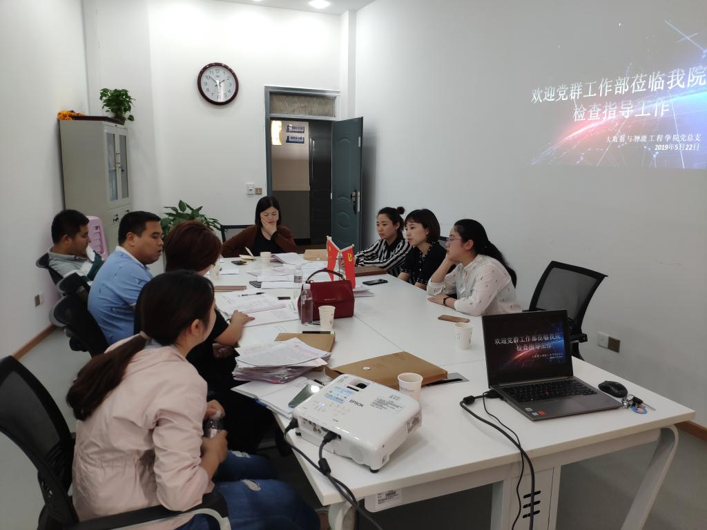 为切实抓好党建工作。2019年5月22日下午, 由党群工作部部长梁修昌老师、党群工作部曾斯琪老师、9428cn太阳集团古天乐组织员帅爱军老师、表演艺术学院组织员张春艳老师和艺术设计学院组织员侯典芬老师一行组成督查小组,深入大数据与智能工程学院检查党建工作开展情况。学院党总支书记胡蓉老师、组织员曾韵洁老师、学生支部书记何庆龄老师参加会议。
