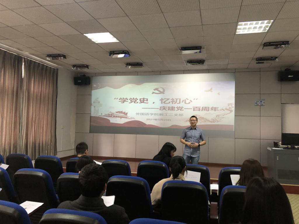 为庆祝中国共产党建党一百周年,贯彻落实习近平总书记关于“不忘初心,牢记使命”主题教育活动的要求,更好地组织党员教师深入学习党史,增强党员教师的爱国情怀和责任意识,外国语学院教工二支部于3月23日下午1点,在合川校区2307教室组织本支部全体党员教师开展了“学党史,忆初心”庆建党一百周年的党史知识竞赛活动。