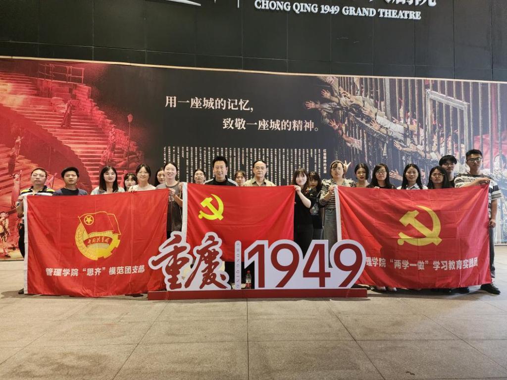 为深入学习宣传贯彻党的二十大精神,打造新时代“红岩先锋”变革型组织,牢牢把握“学思想、强党性、重实践、建新功”的总要求,深刻领悟习近平新时代中国特色社会主义思想的真理力量和实践伟力,引领学院师生党员发扬红色传统、赓续红色血脉、传承红色基因,始终保持踔厉奋发的精神状态,管理学院党总支于2023年5月26日组织师生党员走进重庆1949大剧院,观看红色历史舞台剧目《重庆・1949》。管理学院党总支委员、支部委员及特色团队党员代表参与了此次主题教育活动。