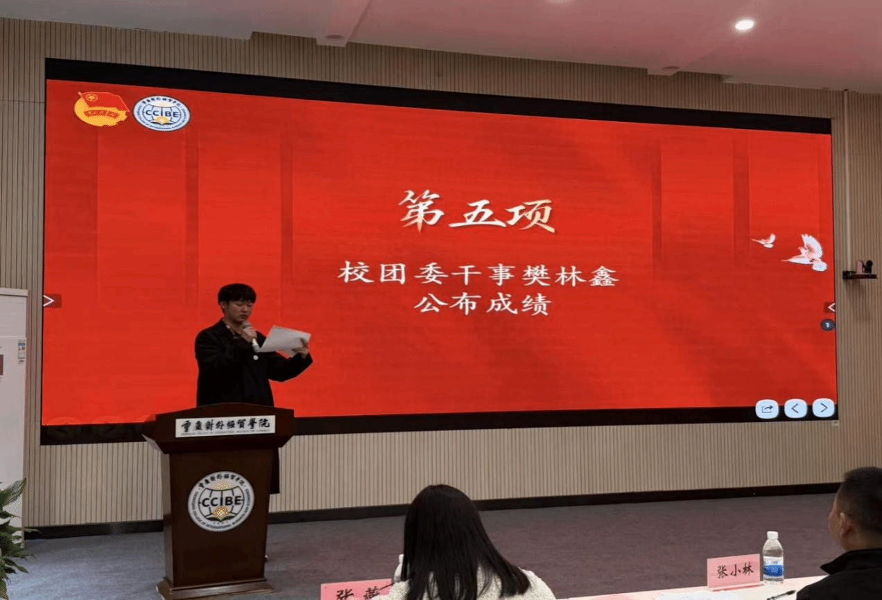 图为校团委干事樊林鑫公布成绩
