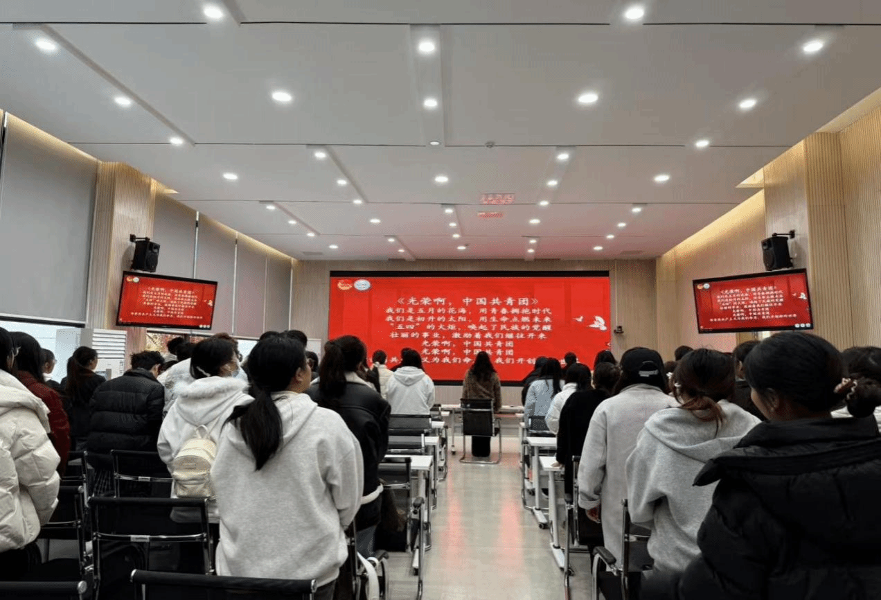 图为齐唱中国共产主义青年团团歌