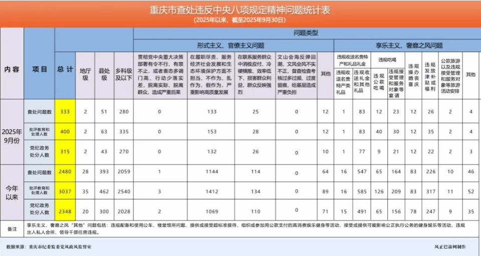 处分315人!2025年9月我市查处违反中央八项规定精神问题333起